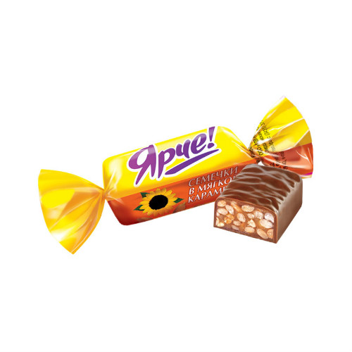Конфеты "Ярче" семечки в мягкой карамели производства кондитерской фабрики Яшкино можно купить оптом с доставкой по Москве, Подмосковью и ЦФО. Низкая цена обусловлена отсутствием посредников при наличии прямого договора с производителем.  Все актуальные сертификаты в наличии. Минимальный заказ: 1 коробка
